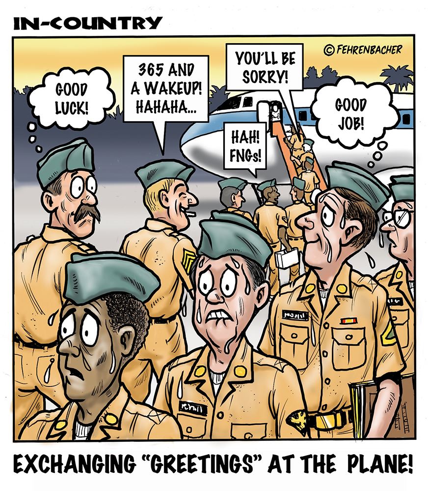 Phil enlisted in the Army in 1965 where you served for years in Vietnam. He became a graphic designer and has worked for the state of Oregon for 26 years. He retired in 2003 and started the Cartoon "In-Country". The cartoons reflect his experiences during his tour of duty in South Vietnam.