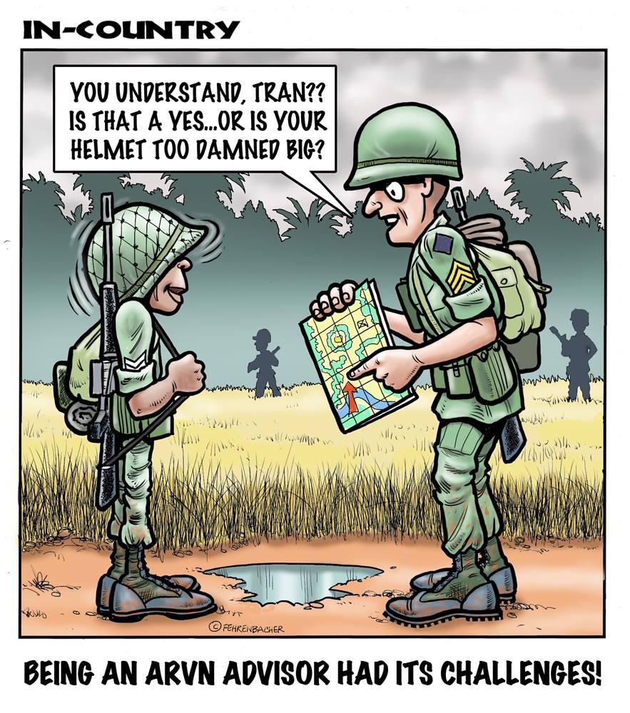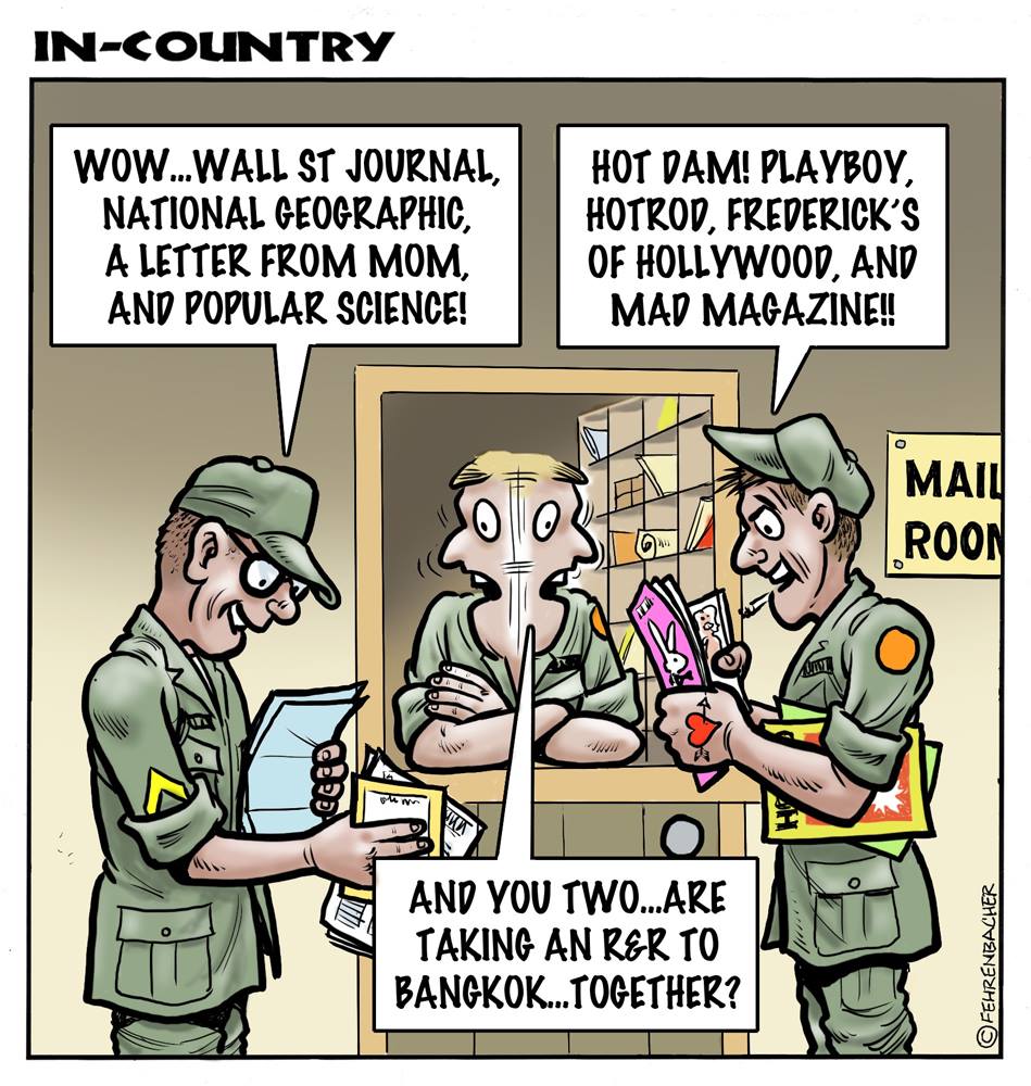 Phil enlisted in the Army in 1965 where you served for years in Vietnam. He became a graphic designer and has worked for the state of Oregon for 26 years. He retired in 2003 and started the Cartoon "In-Country". The cartoons reflect his experiences during his tour of duty in South Vietnam.