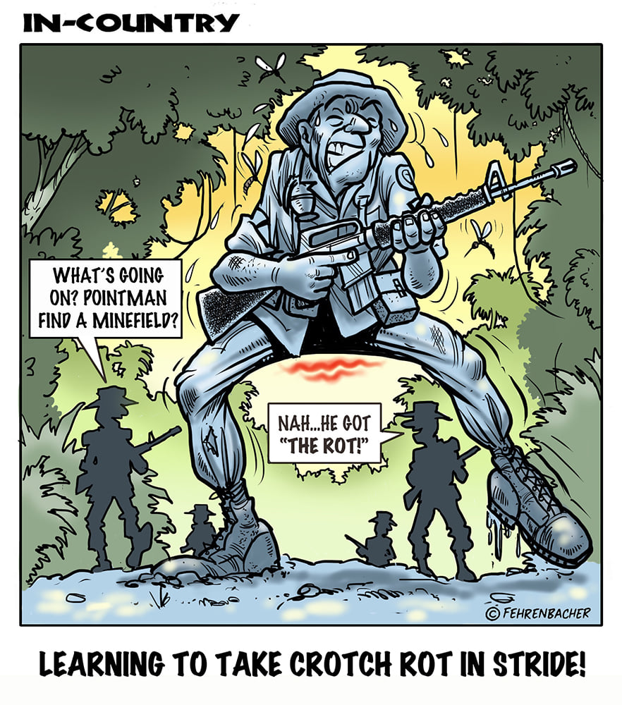 Phil enlisted in the Army in 1965 where you served for years in Vietnam. He became a graphic designer and has worked for the state of Oregon for 26 years. He retired in 2003 and started the Cartoon "In-Country". The cartoons reflect his experiences during his tour of duty in South Vietnam.