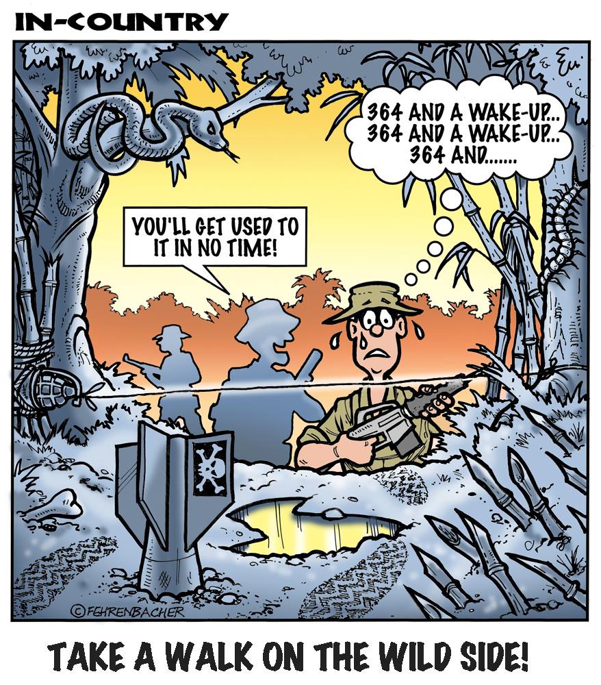 Phil enlisted in the Army in 1965 where you served for years in Vietnam. He became a graphic designer and has worked for the state of Oregon for 26 years. He retired in 2003 and started the Cartoon "In-Country". The cartoons reflect his experiences during his tour of duty in South Vietnam.